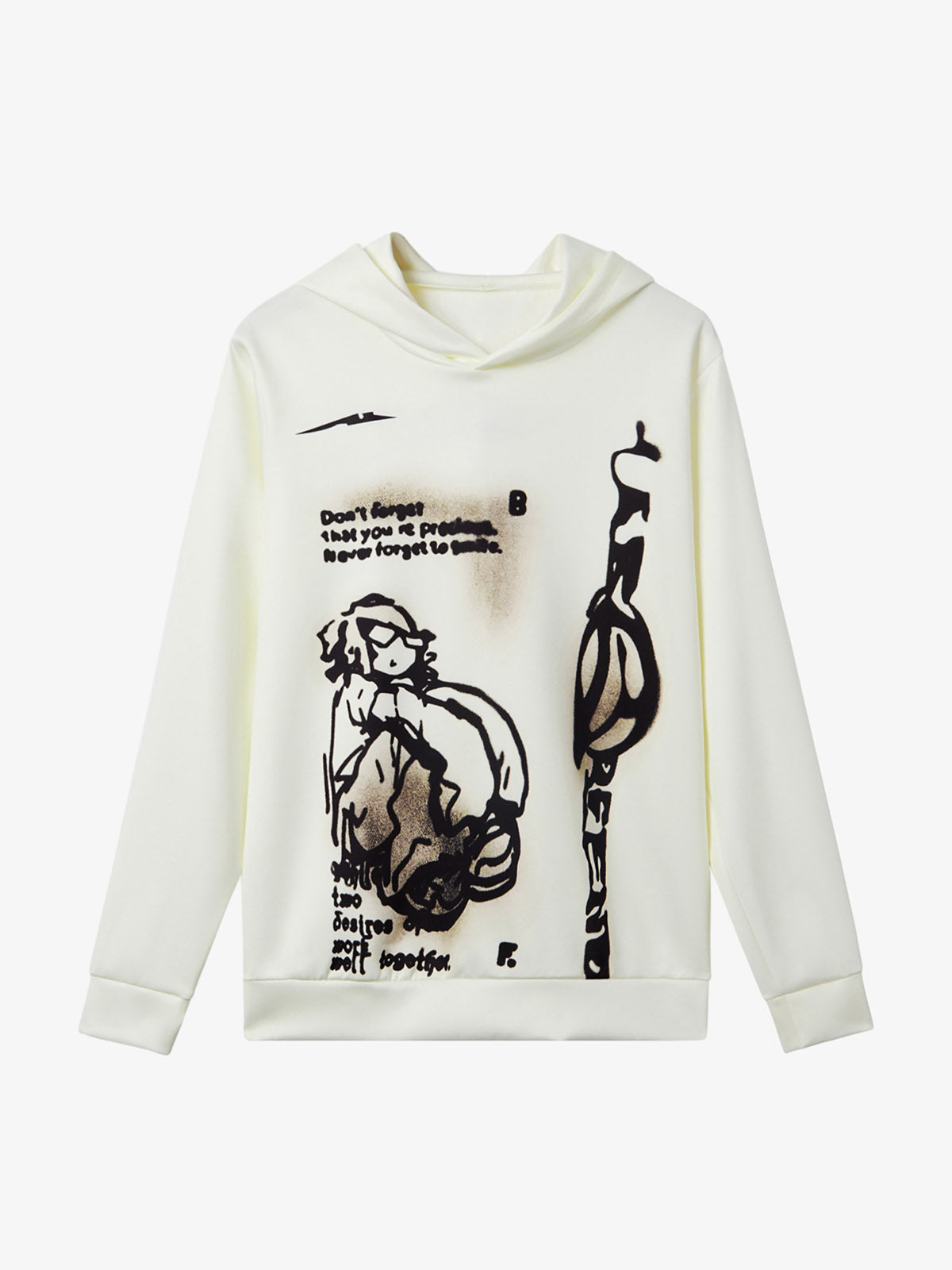 • Detail Features: Long Sleeve, Hooded, Graphic Print, Ribbed Cuffs and Hem