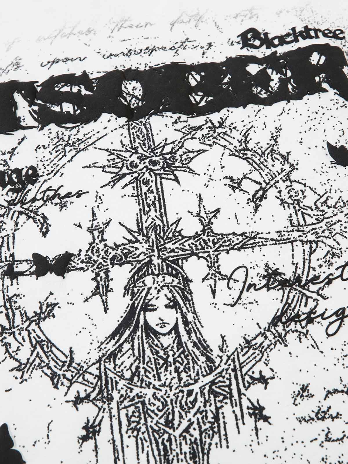 Thesupermade Star Necklace Cross Graphic Long Sleeve T-shirt