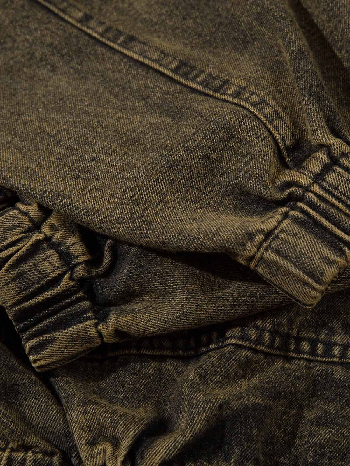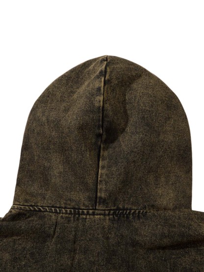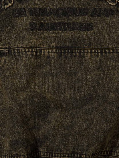 Washed Distressed Letter Embroidered Denim Hoodie