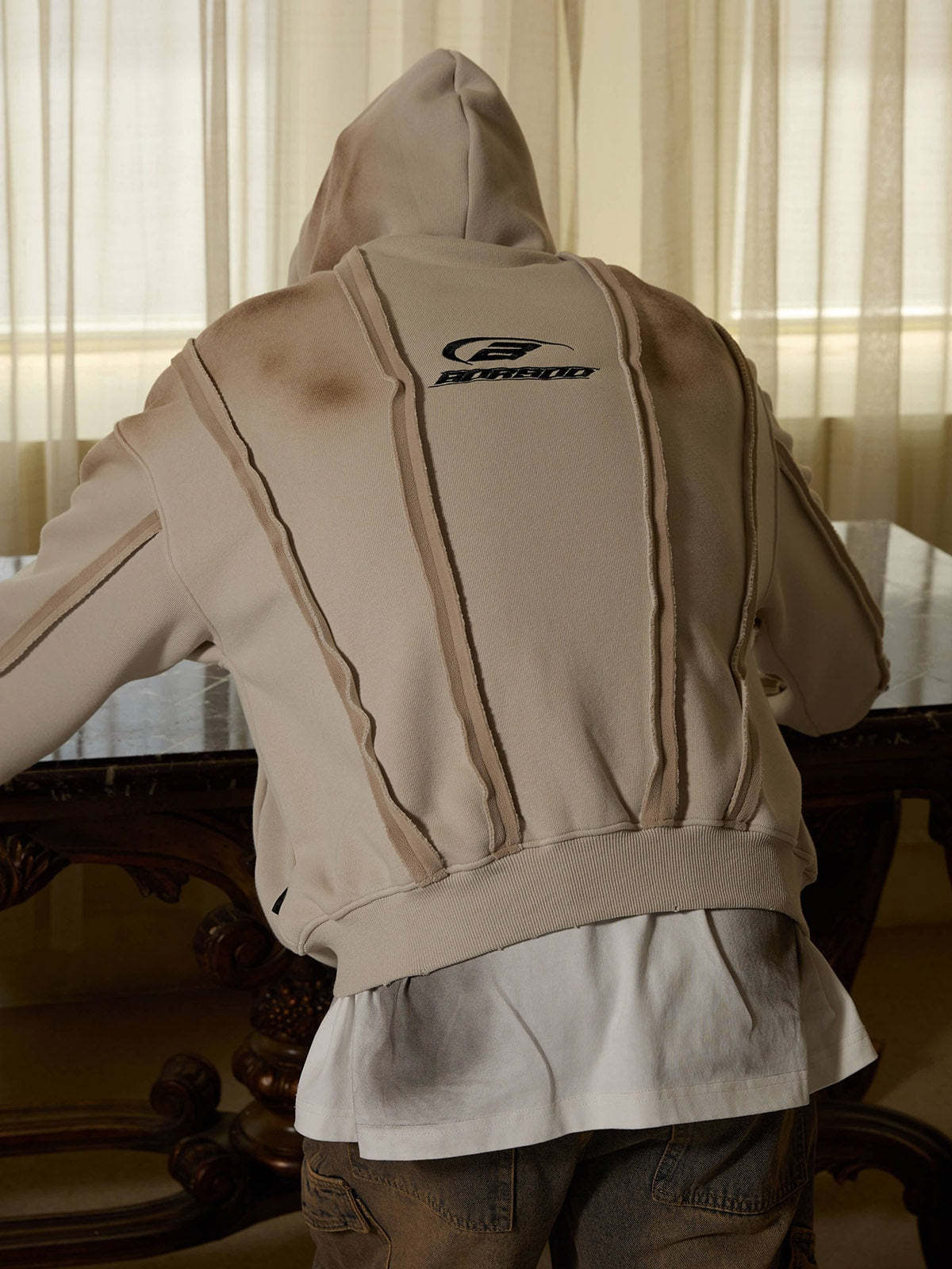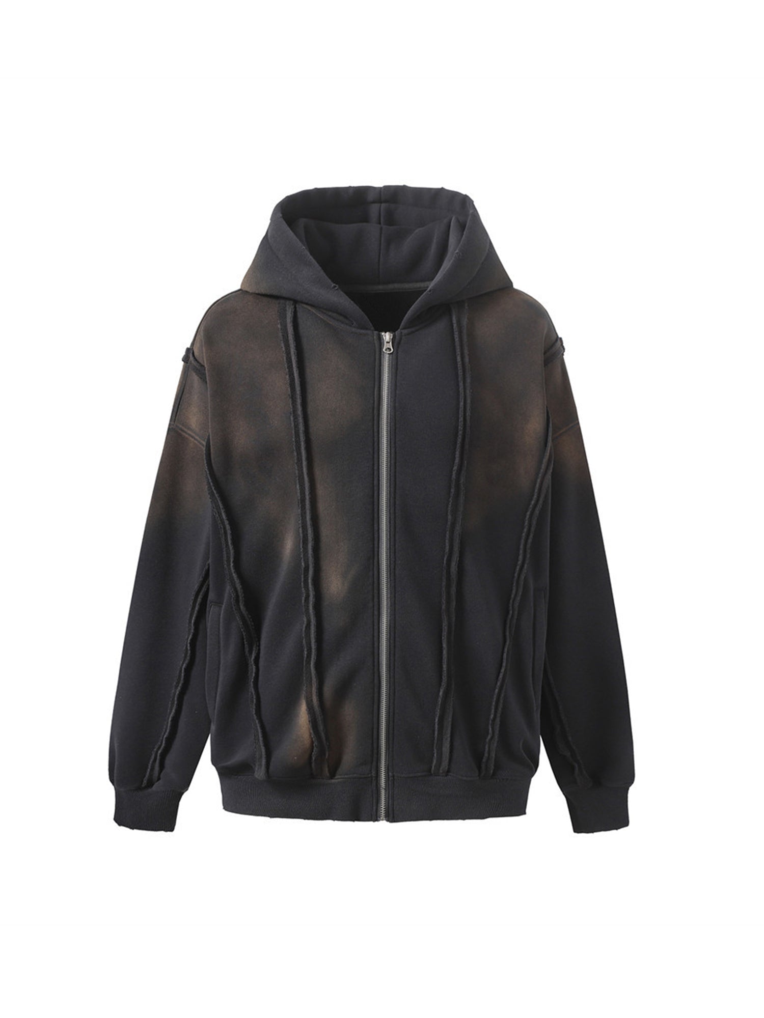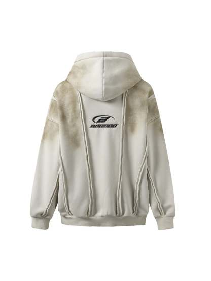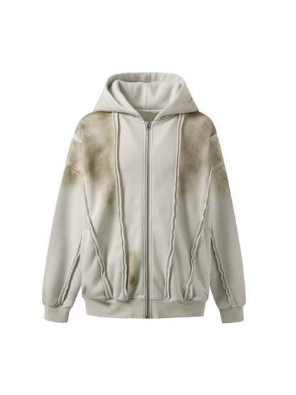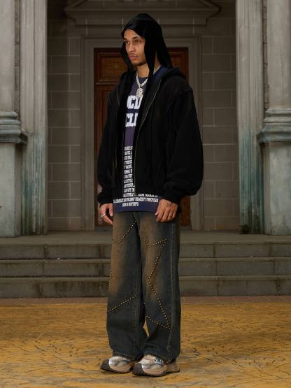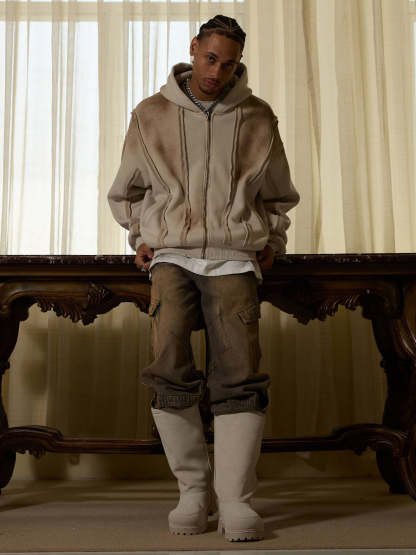 Thesupermade Distressed Patchwork Velvet Cardigan Hooded Sweatshirt