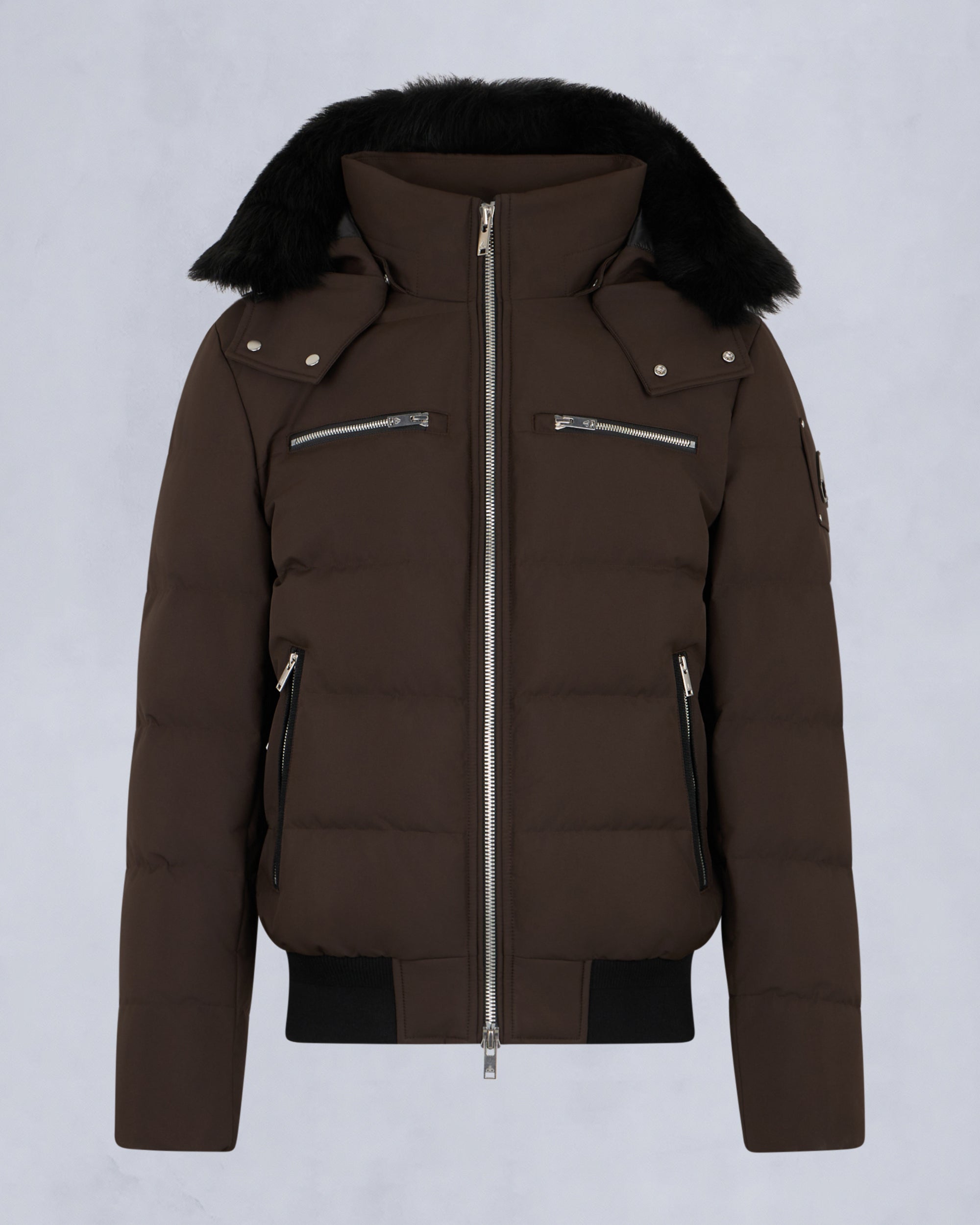CLOUD SHEARLING TRIM BOMBER JACKET-ESPRESSO/BLACK