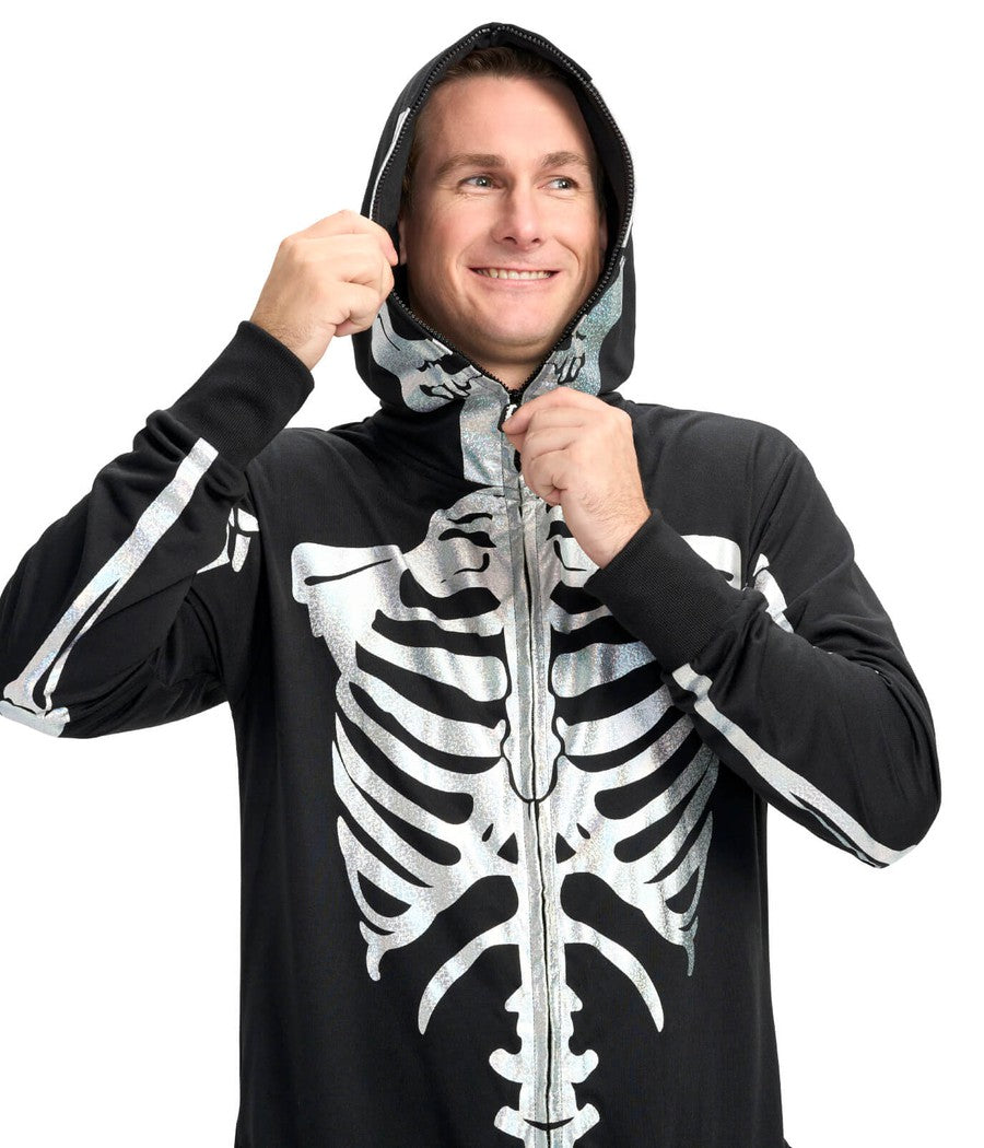 Bring some glitz to your ghoul this Halloween in this Men's Shimmer Skeleton Costume! This spooky onesie will put a twinkle in the eyes of any trick-or-treaters. Get your shimmer on!
