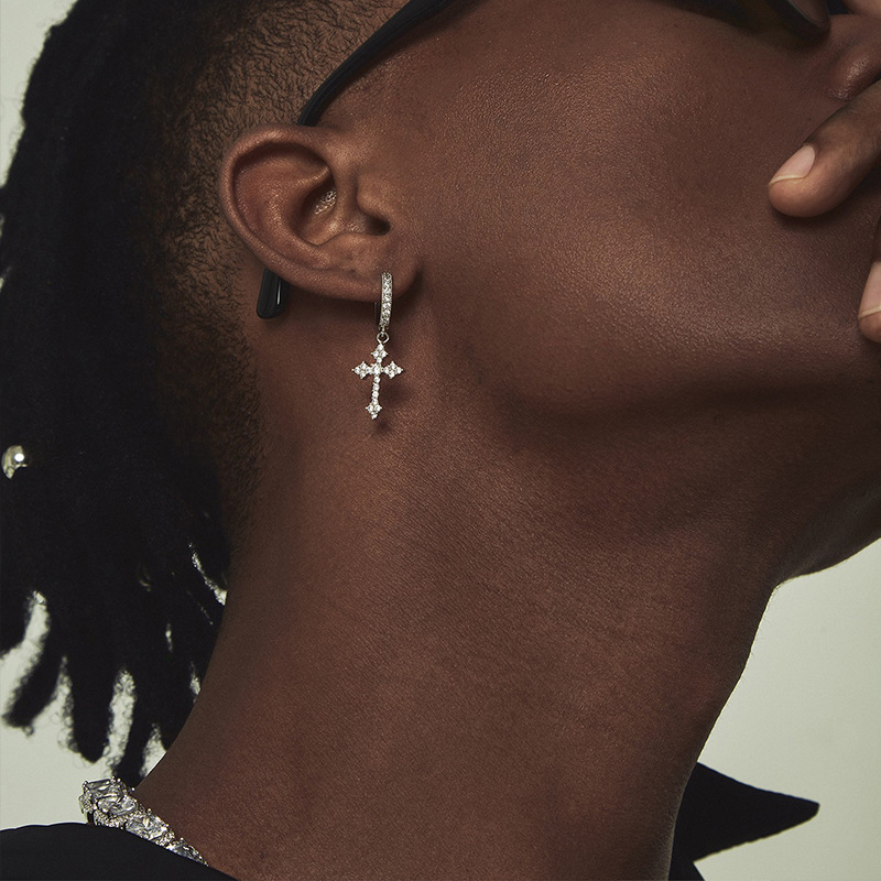 Men's Diamond Cross Earrings
