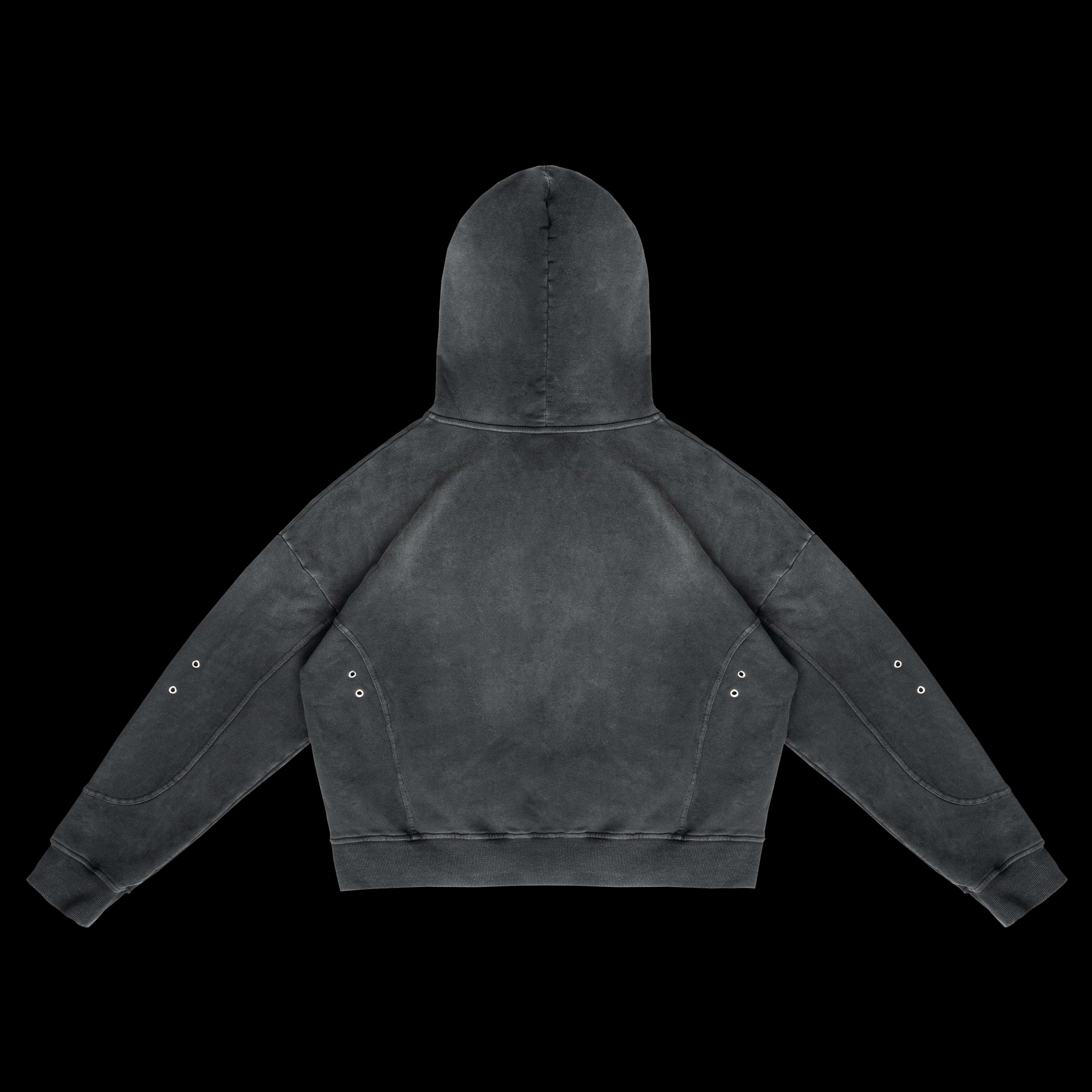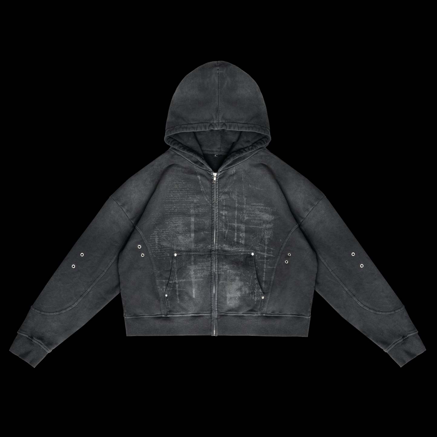 Featuring reinforced rivets and eyelets, the Phantom Zip Up is built to last, with attention to detail in every stitch. Whether you're layering up for the cooler months or adding an edge to your streetwear look, this hoodie is your go-to for effortless style and superior craftsmanship.