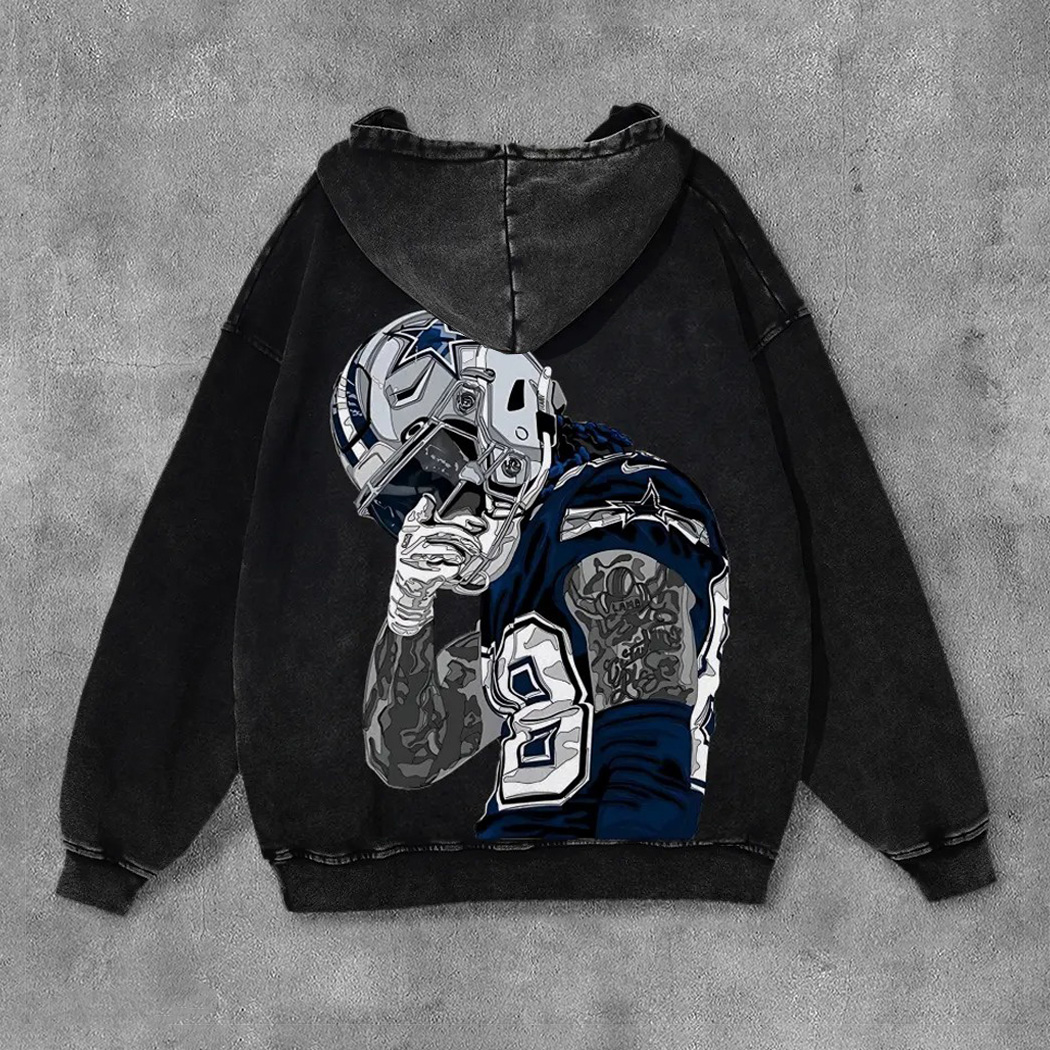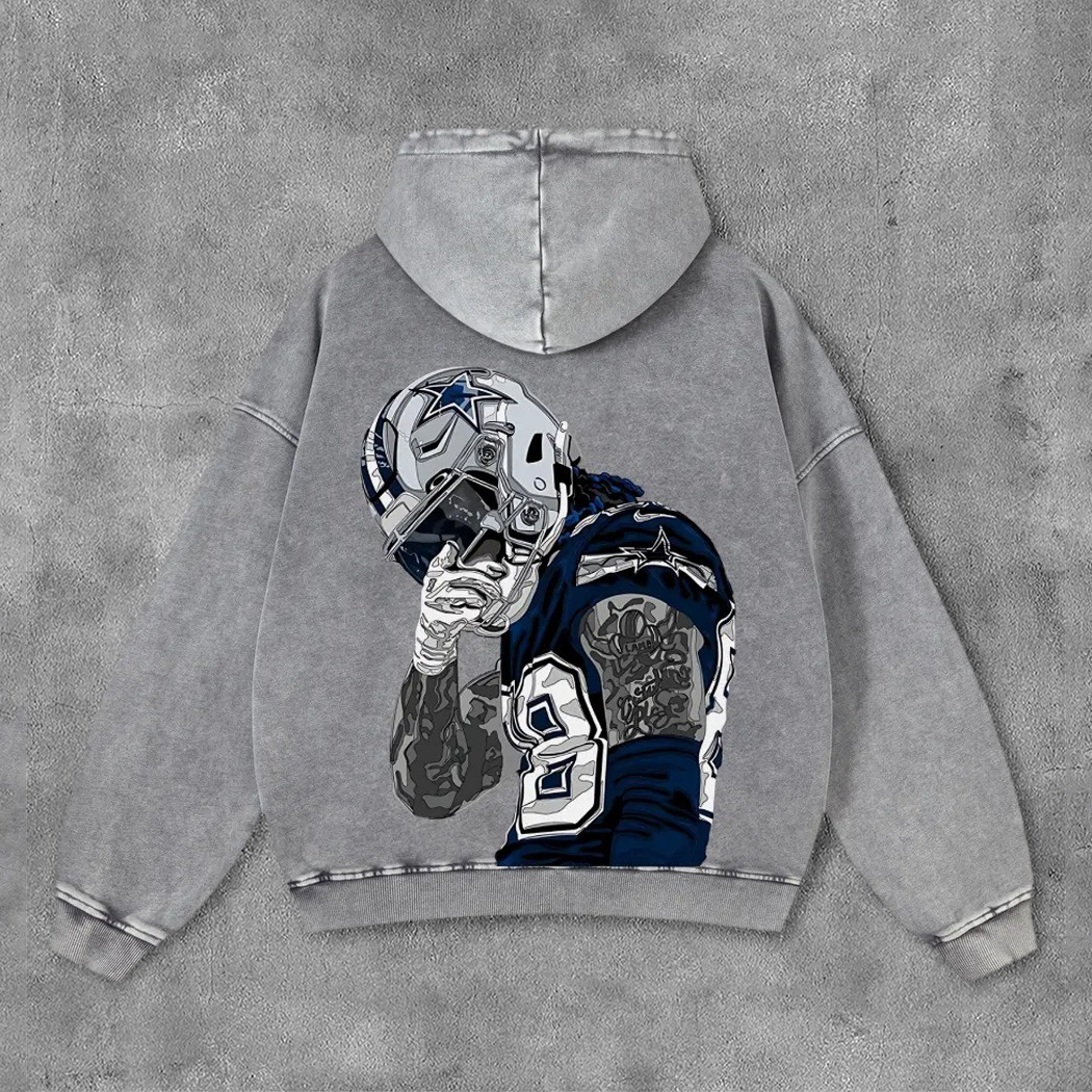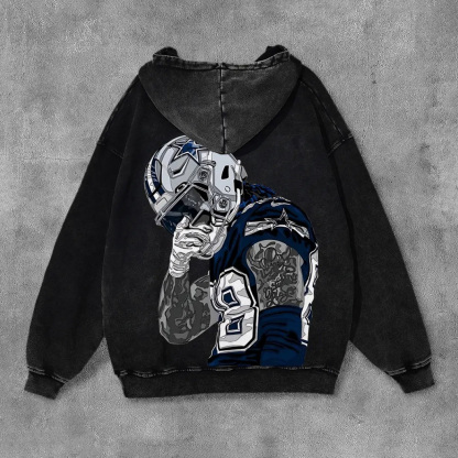Stylish Cowboys No.88 Player Print Washed Distressed Hoodies