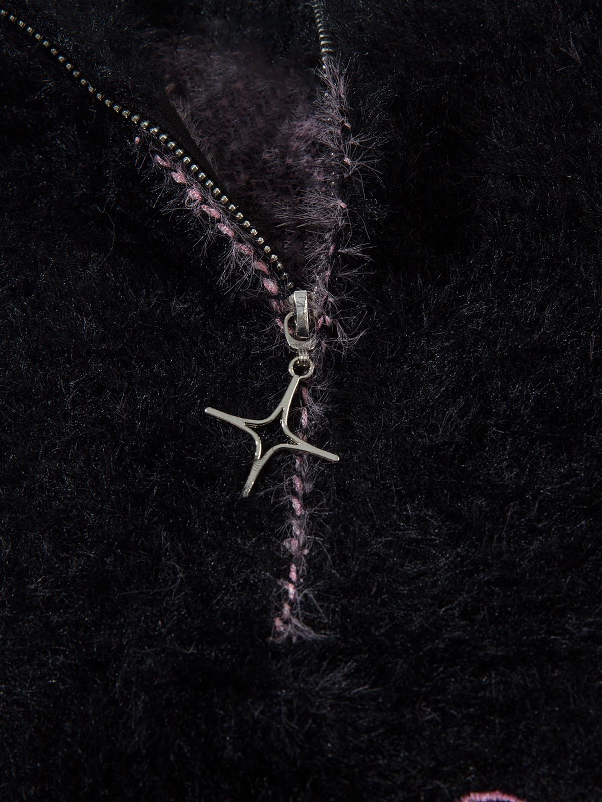 Thesupermade Faux Mink Butterfly Zip Up Turtle Neck Sweater