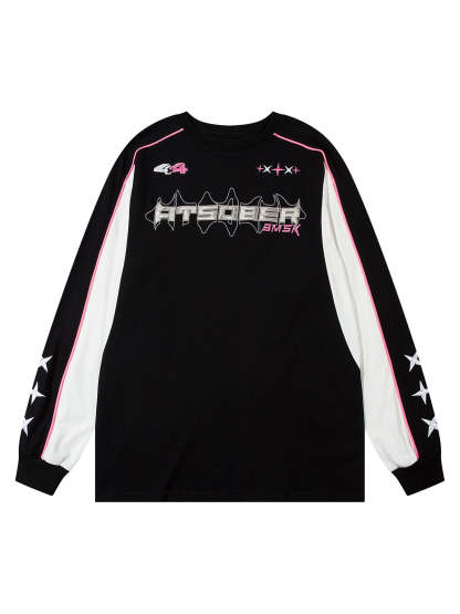 Thesupermade Silver Letter Cross Embroidery Long Sleeve T-shirt
