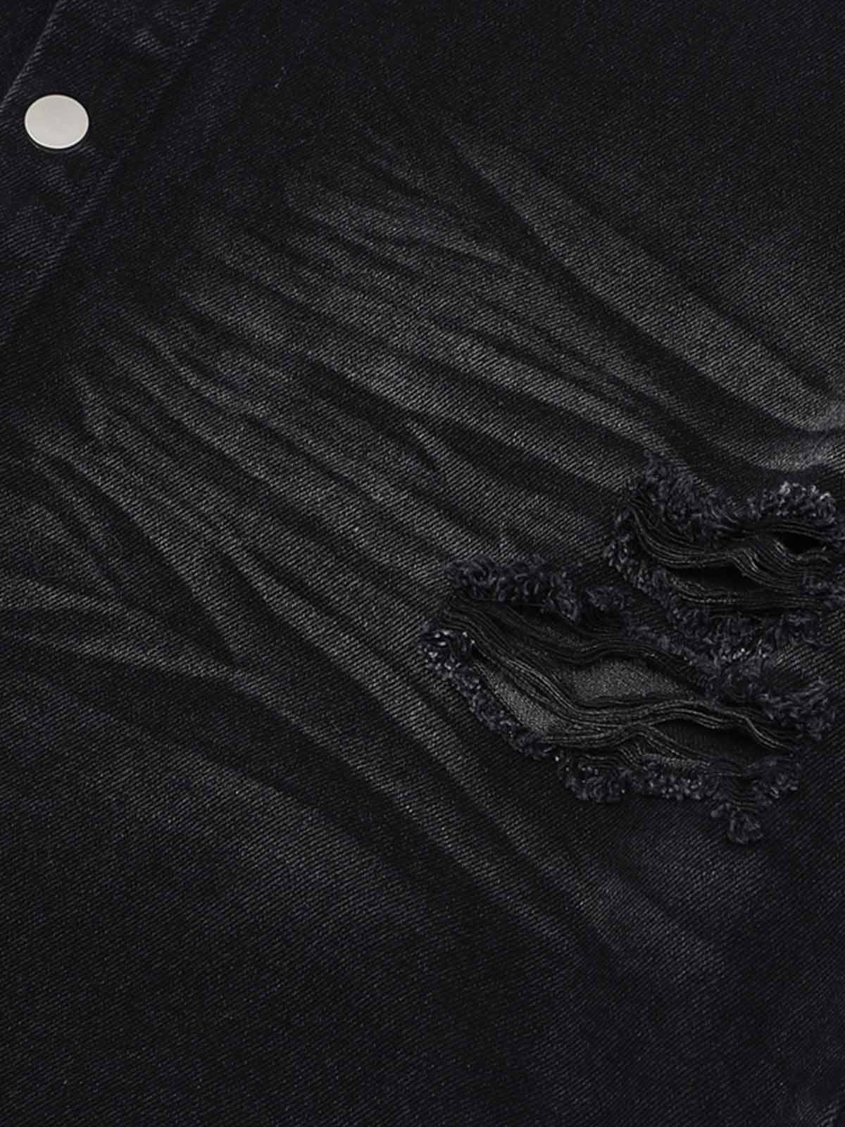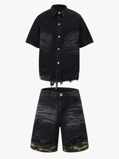 Thesupermade Patchwork Camouflage Ripped Shirt Jorts Denim Suit